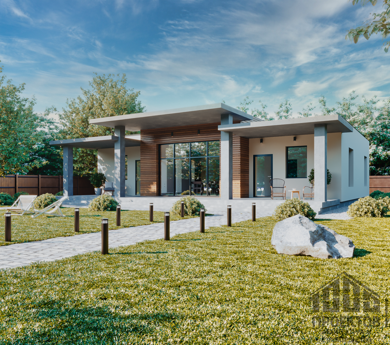 Проект дома общей площадью 131,95м2. Продуманная планировка и удачное расположение помещений делают дом по-настоящему комфортным. Там разместились большая кухня-гостиная с панорамными окнами в центре дома, подчеркивает ощущение простора, три просторные спальни, два сан. узла и гардеробная. В таком доме можно с комфортом принимать большое количество гостей.