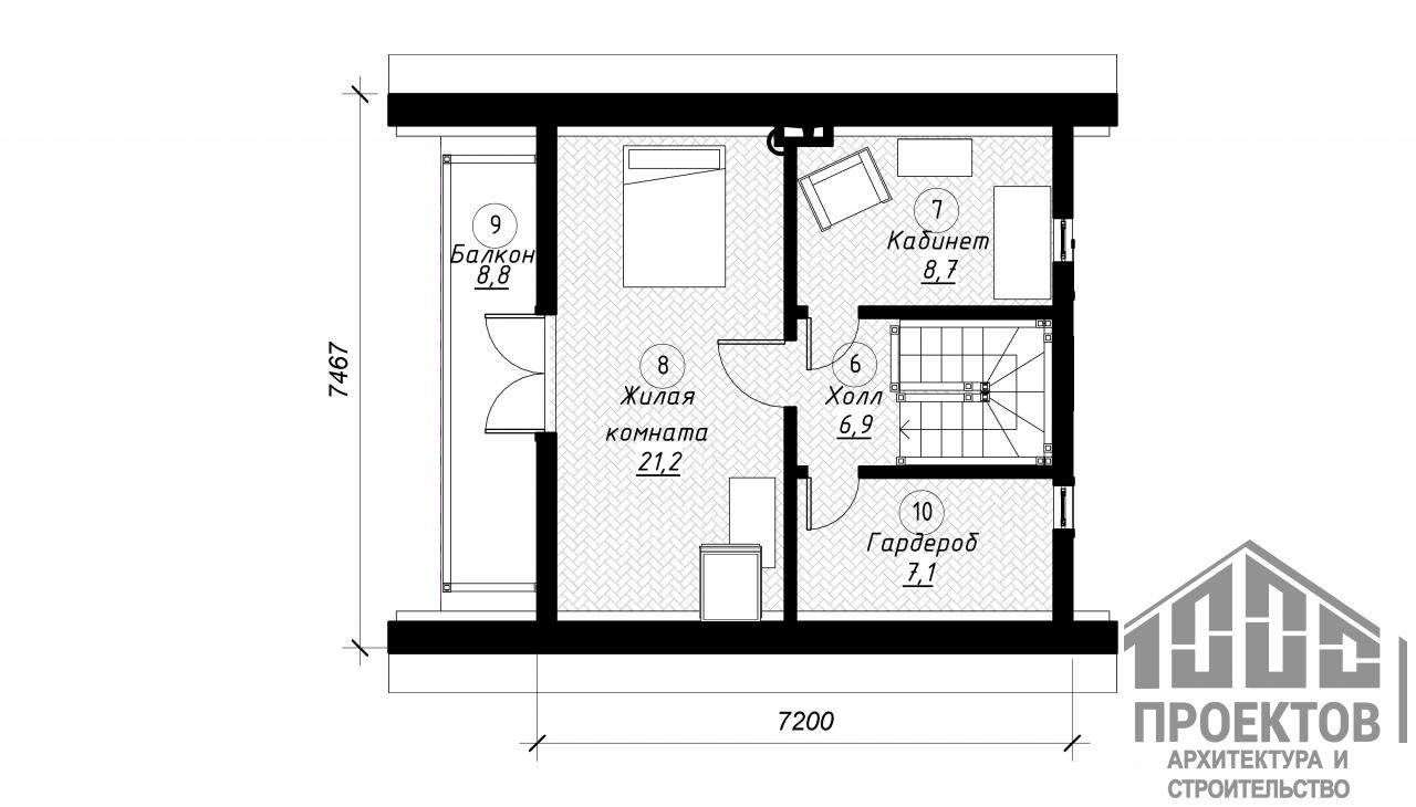 Количество жилых этажей: 1+мансарда