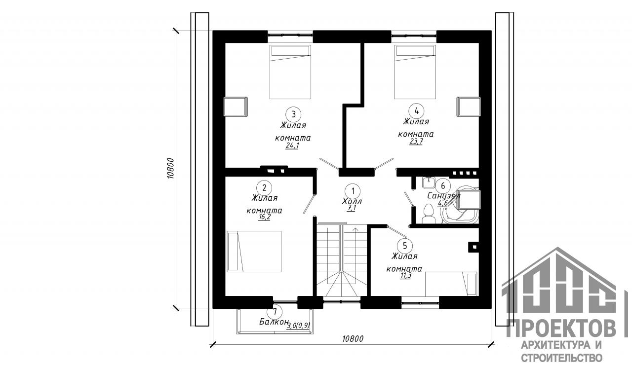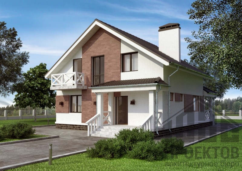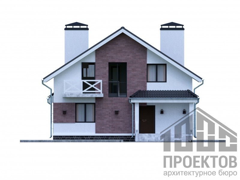 Проект дома из газосиликатных блоков площадью 174,7м2. В доме один этаж с мансардой, где находятся гостиная, кухня, 5 жилых комнаты, 2 санузла, балкон и уютная терраса.