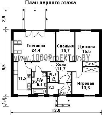Проект дома из блоков 1390