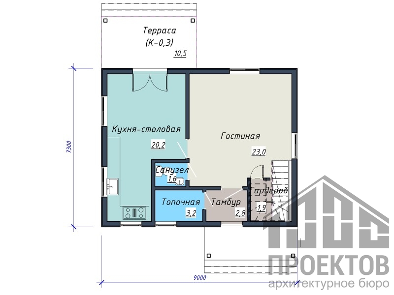 Высота этажа – 2,6м, минимальная высота мансардного этажа - 1,2м