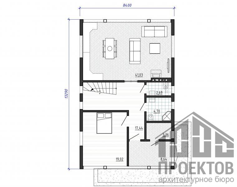 Материал стен – «каркасного типа» (толщина утеплителя 200мм), с обшивкой плитами ЦСП с отделкой фальцем