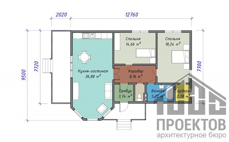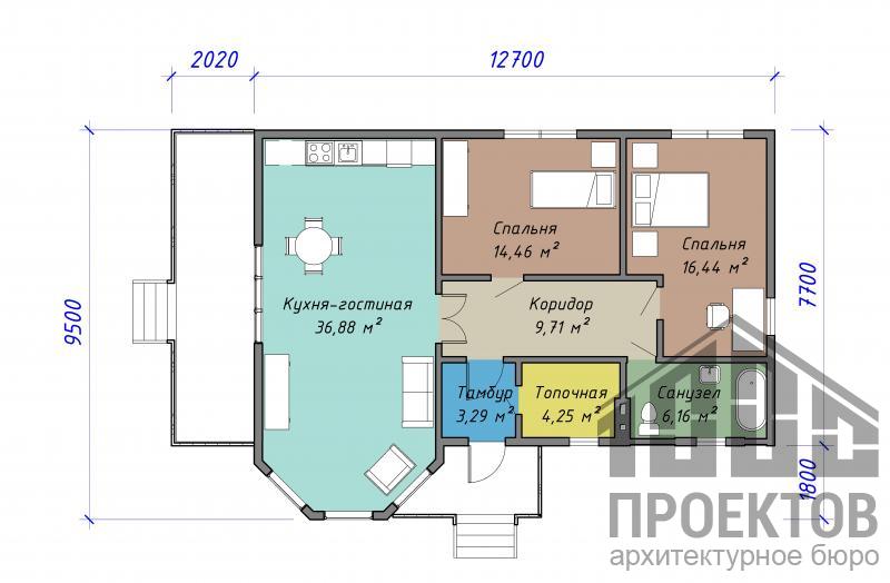 Материал стен – «каркасного типа» (толщина утеплителя 200мм), с обшивкой «имитация бруса»