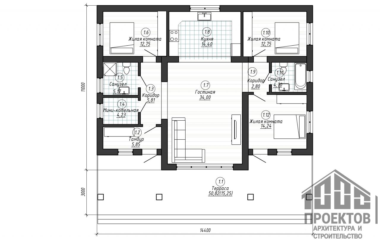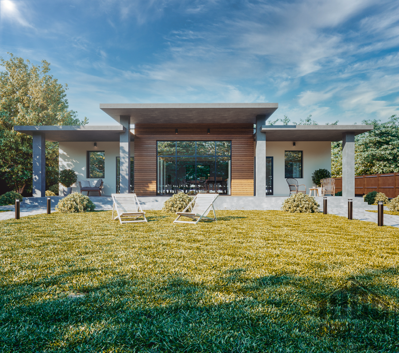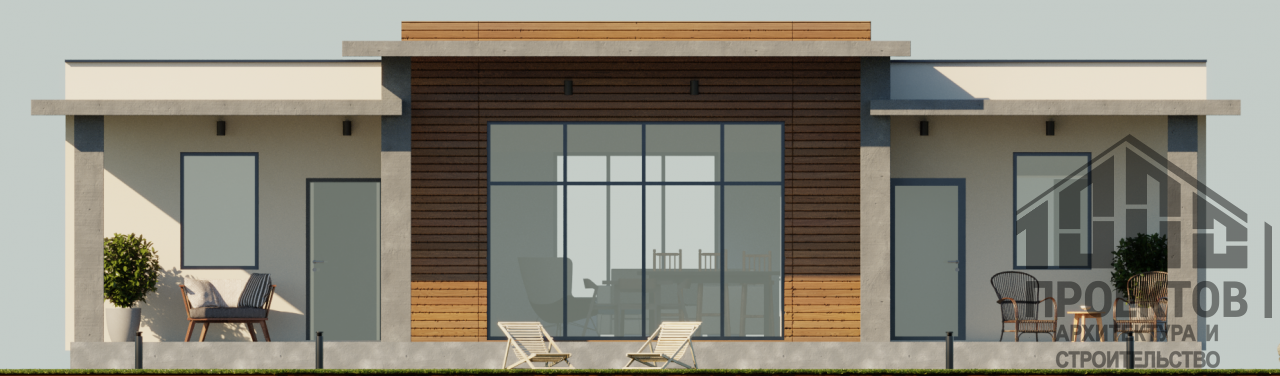 Проект дома общей площадью 131,95м2. Продуманная планировка и удачное расположение помещений делают дом по-настоящему комфортным. Там разместились большая кухня-гостиная с панорамными окнами в центре дома, подчеркивает ощущение простора, три просторные спальни, два сан. узла и гардеробная. В таком доме можно с комфортом принимать большое количество гостей.