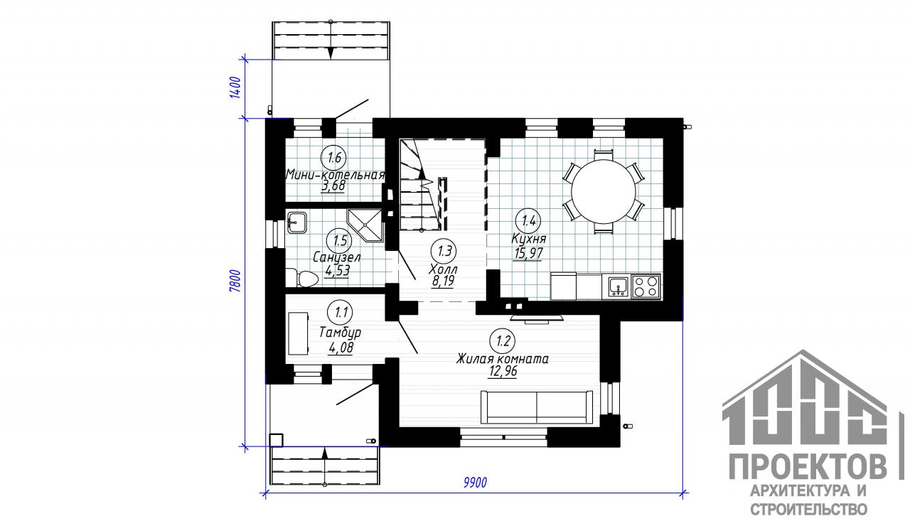 На первом этаже располагается кухня, общая комната, мини-котельная, санузел и тамбур. На втором – три жилых комнаты. Большая кухня порадует любителей домашних посиделок, а изолированная от общих помещений мансарда создаст неповторимый уют и комфорт для вашего проживания.