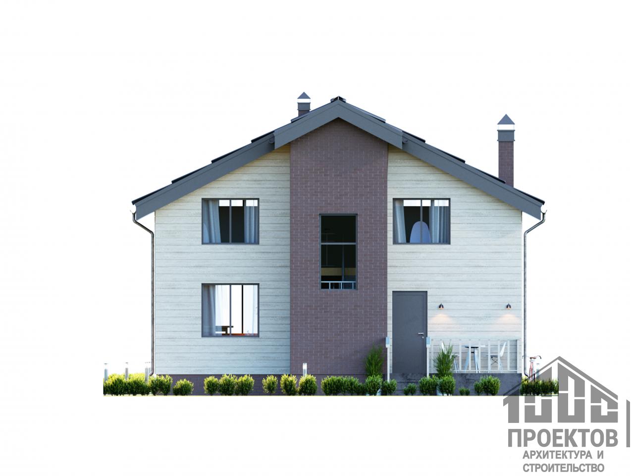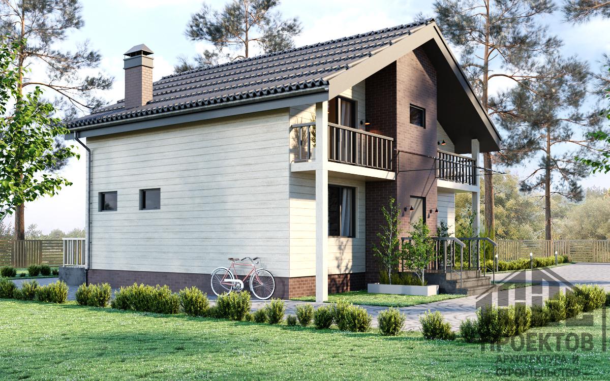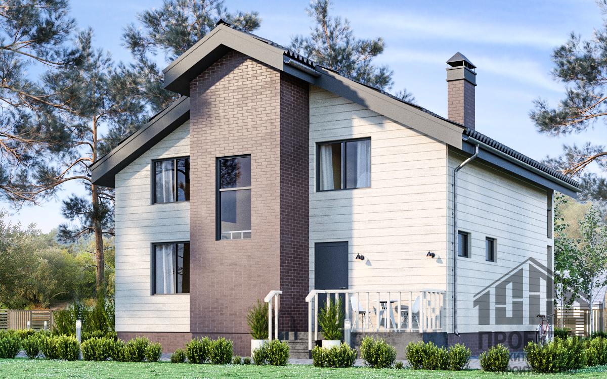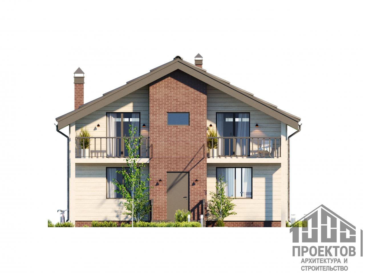Проект каркасного жилого дома с очень удобной и вместительной планировкой. Общая площадь жилого дома составляет всего 129,94 м2 и включает в себя целых 5 жилых комнат. Проект данного мансардного жилого дома будет находкой для многодетной семьи. В нем нет ничего лишнего и при этом имеются все необходимые для жизни и удобства помещения: жилые комнаты достаточно вместительные, около 12 м2 каждая, этого достаточно для удобного размещения мебели; в два больших санузла с легкостью поместится вся необходимая сантехника; просторные и освещенные холлы безусловно являются положительной стороной проекта; мини-котельная имеет вход из дома и с улицы (если в проекте будет заложен твердотопливный котел, это поможет избежать лишней грязи в доме). Отделка, комбинированная из имитации бруса и сайдинга под кирпич, придают некую изюминку весьма простому, но очень уютному мансардному жилому дому.