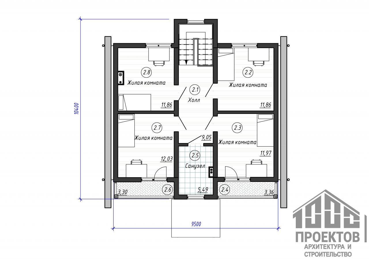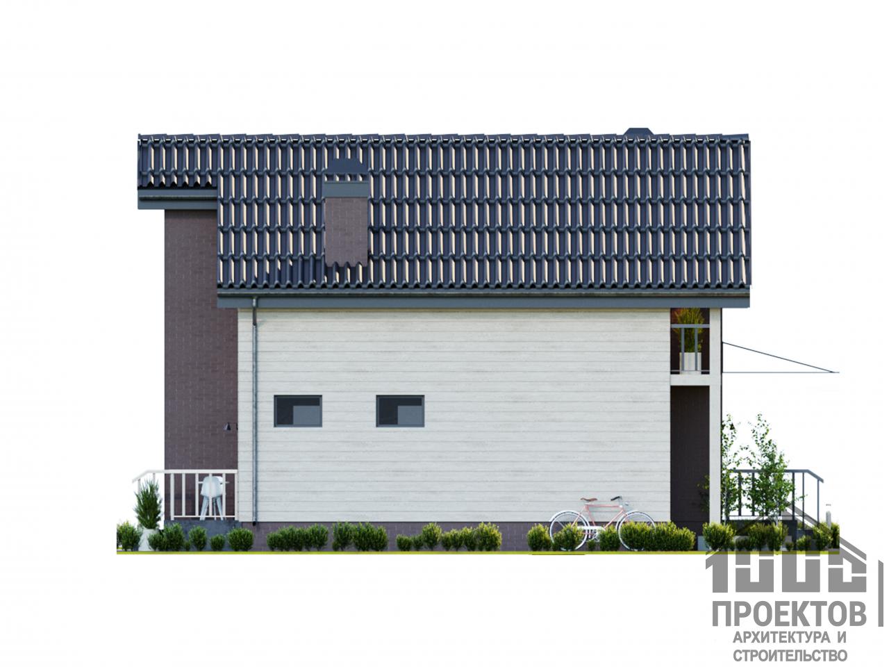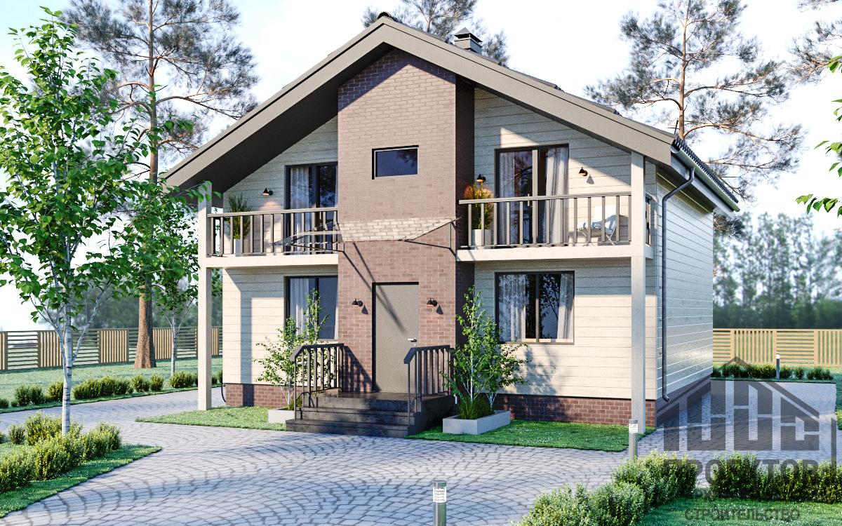 Проект каркасного жилого дома с очень удобной и вместительной планировкой. Общая площадь жилого дома составляет всего 129,94 м2 и включает в себя целых 5 жилых комнат. Проект данного мансардного жилого дома будет находкой для многодетной семьи. В нем нет ничего лишнего и при этом имеются все необходимые для жизни и удобства помещения: жилые комнаты достаточно вместительные, около 12 м2 каждая, этого достаточно для удобного размещения мебели; в два больших санузла с легкостью поместится вся необходимая сантехника; просторные и освещенные холлы безусловно являются положительной стороной проекта; мини-котельная имеет вход из дома и с улицы (если в проекте будет заложен твердотопливный котел, это поможет избежать лишней грязи в доме). Отделка, комбинированная из имитации бруса и сайдинга под кирпич, придают некую изюминку весьма простому, но очень уютному мансардному жилому дому.