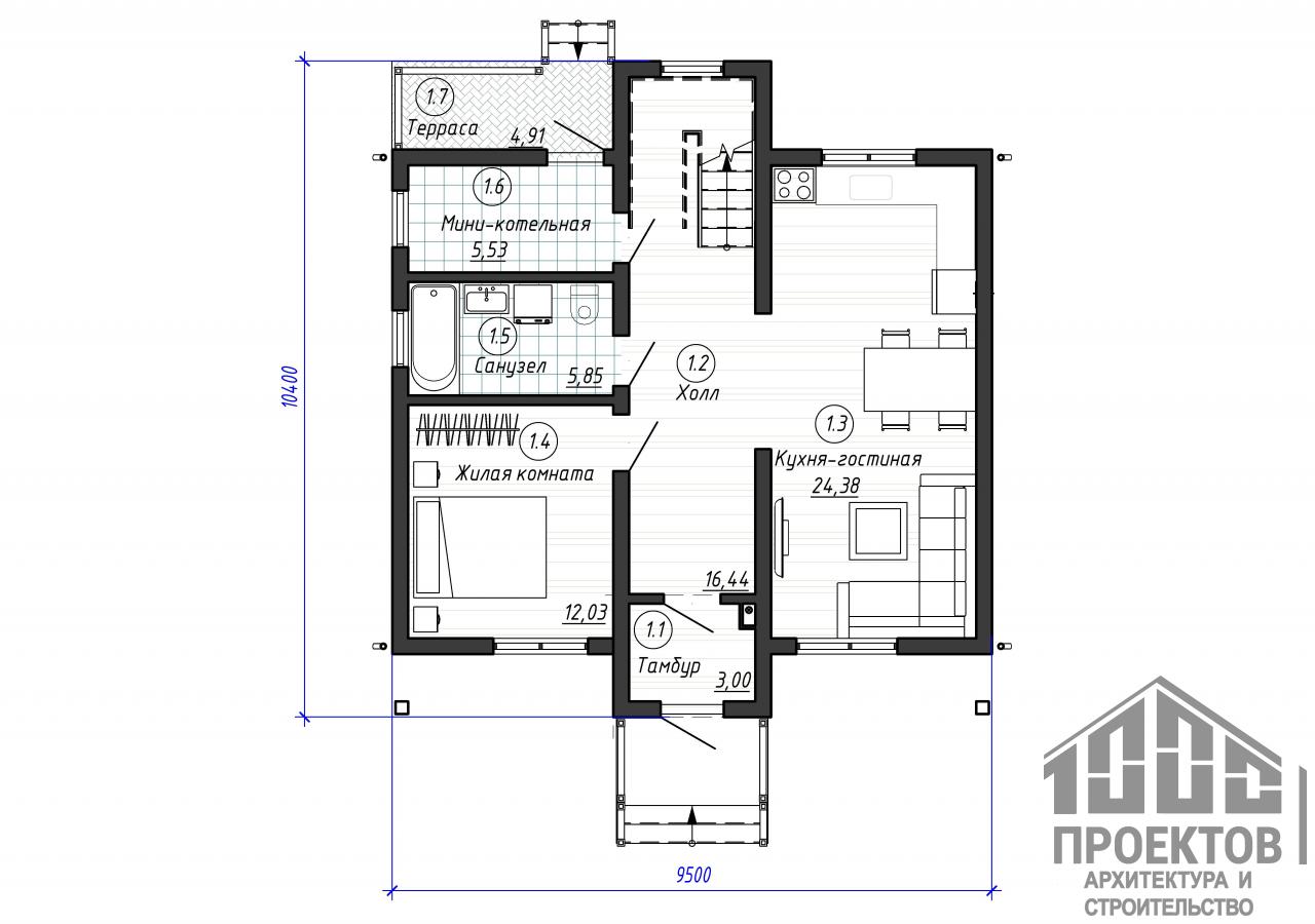 Высота мансардного этажа – мин. - 1,6м; макс. - 2,5м;