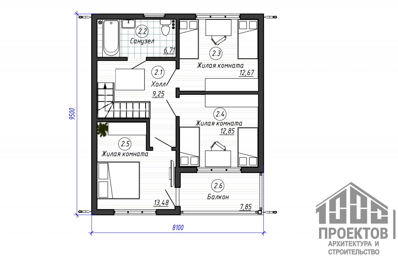 Высота мансардного этажа – мин. - 1,8м; макс. - 2,5м;