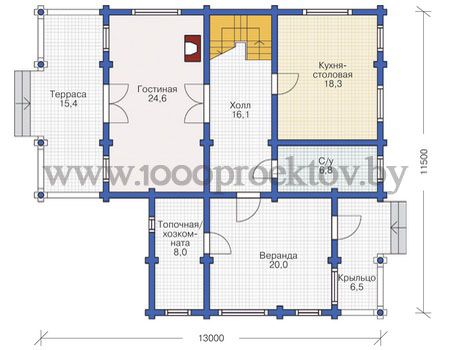 Стены – оцилиндрованное бревно