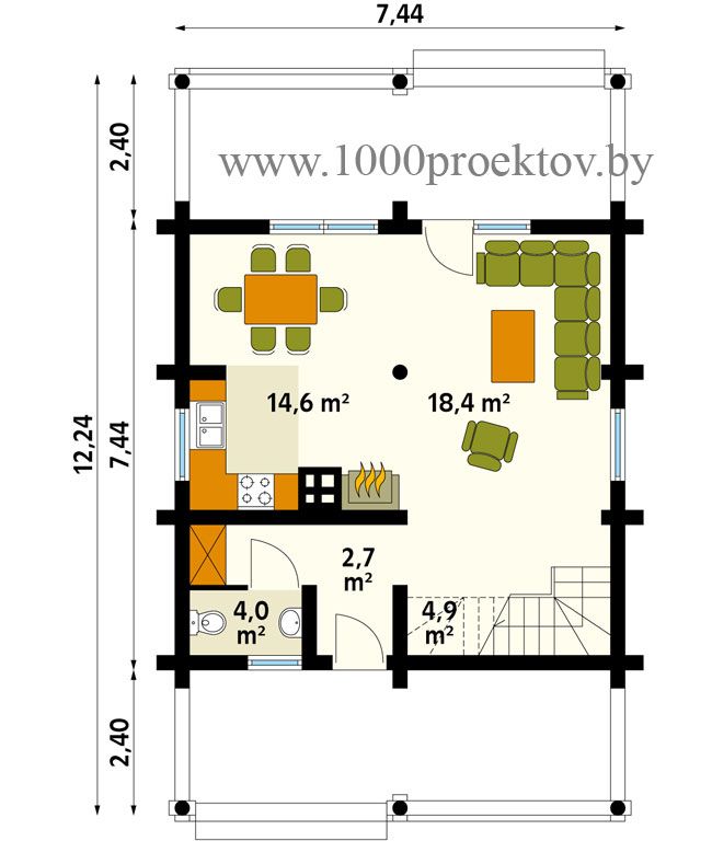 Стены – оцилиндрованное бревно