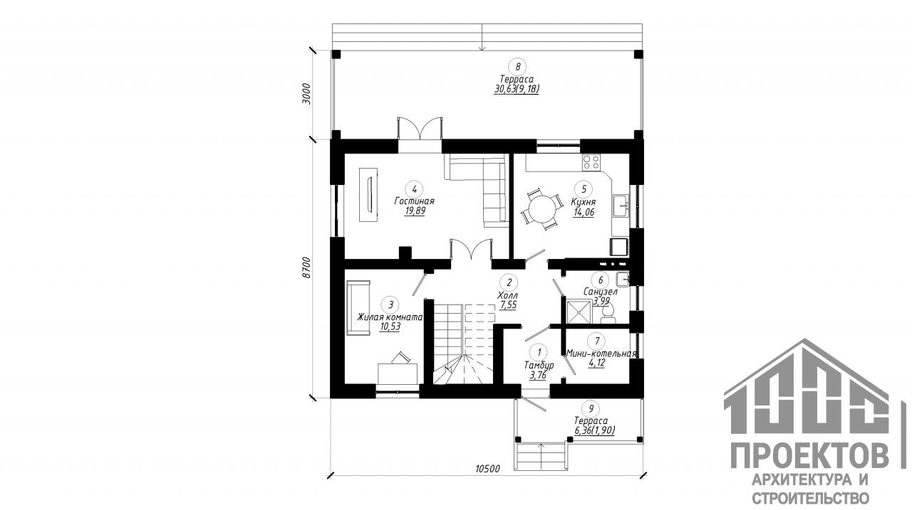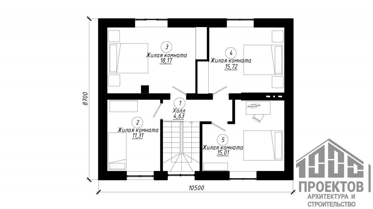 Проект дома из газосиликатных блоков площадью 139,82м2. В доме один этаж с мансардой, где находятся просторная гостиная, кухней, 5 жилых комнат и санузел.