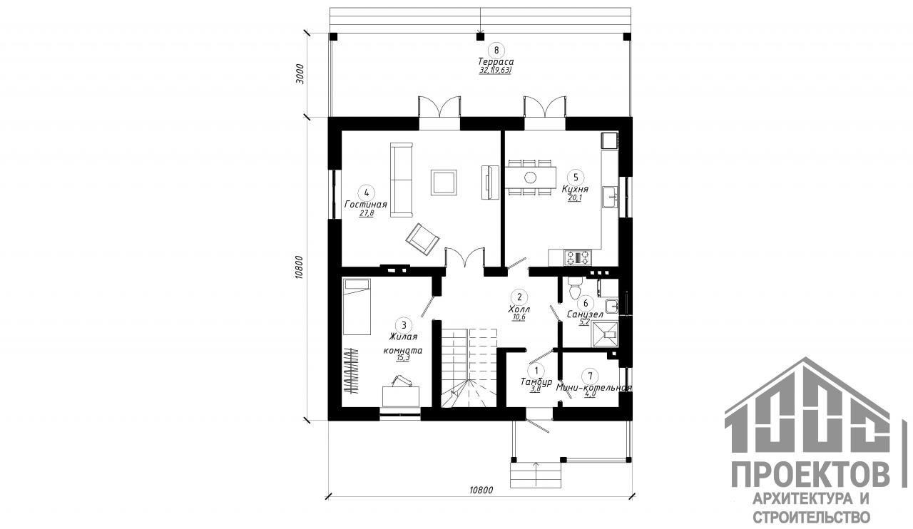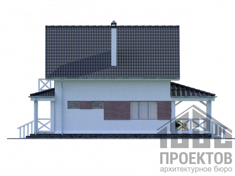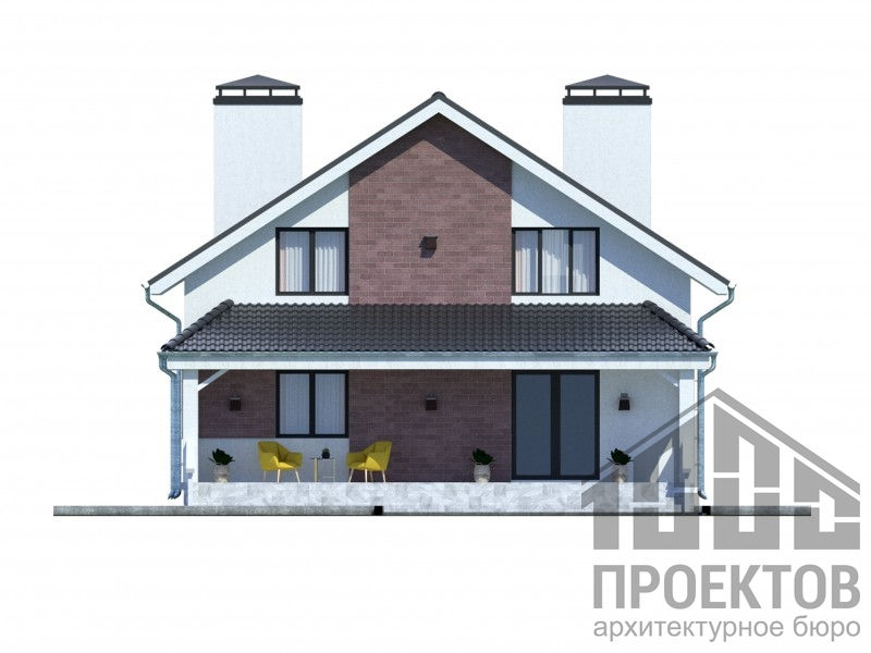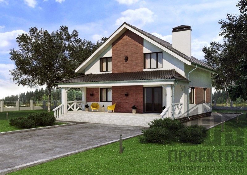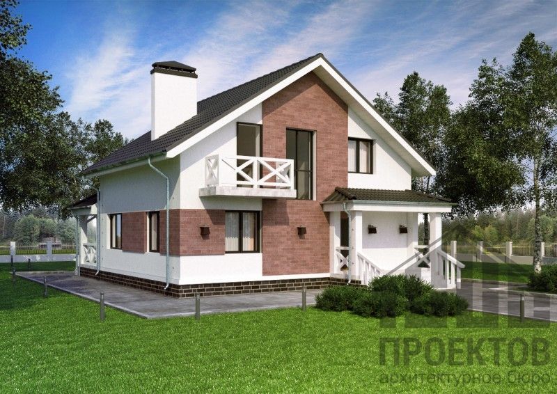 Проект дома из газосиликатных блоков площадью 174,7м2. В доме один этаж с мансардой, где находятся гостиная, кухня, 5 жилых комнаты, 2 санузла, балкон и уютная терраса.