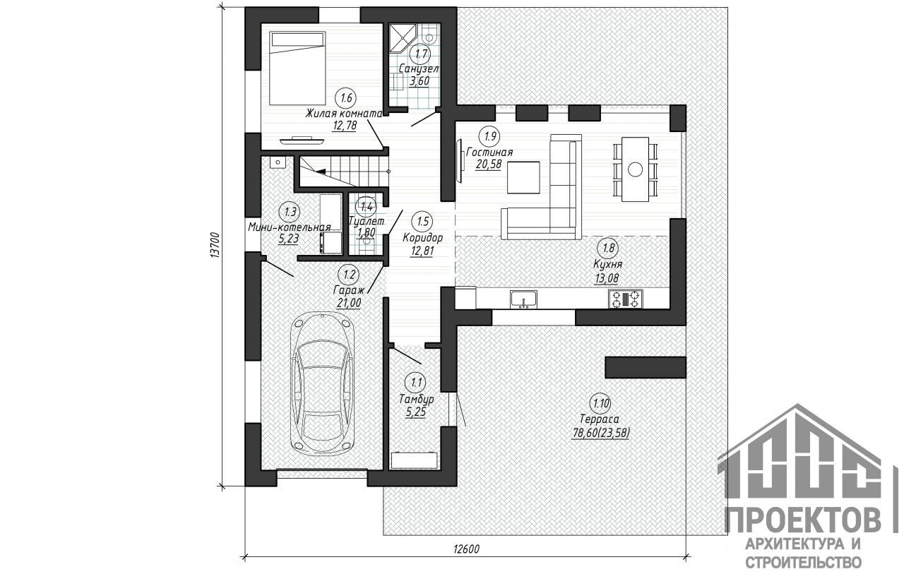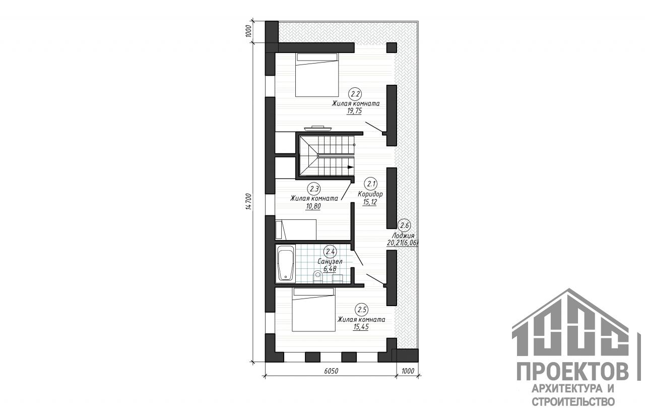 Проект двухэтажного дома из газосиликатных блоков площадью 193.37 м2. На первом этаже в проект включены большая кухня-гостиная, жилая комната, просторный холл, раздельный санузел, топочная, гараж и комфортабельная терраса. На втором этаже будут 3 жилые комнаты, санузел и лоджия.