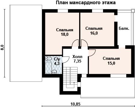 Количество жилых этажей: 1+мансарда