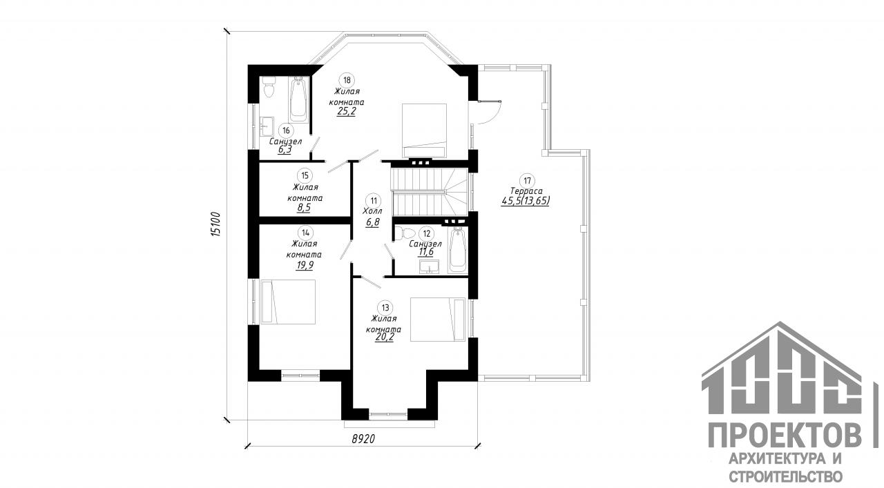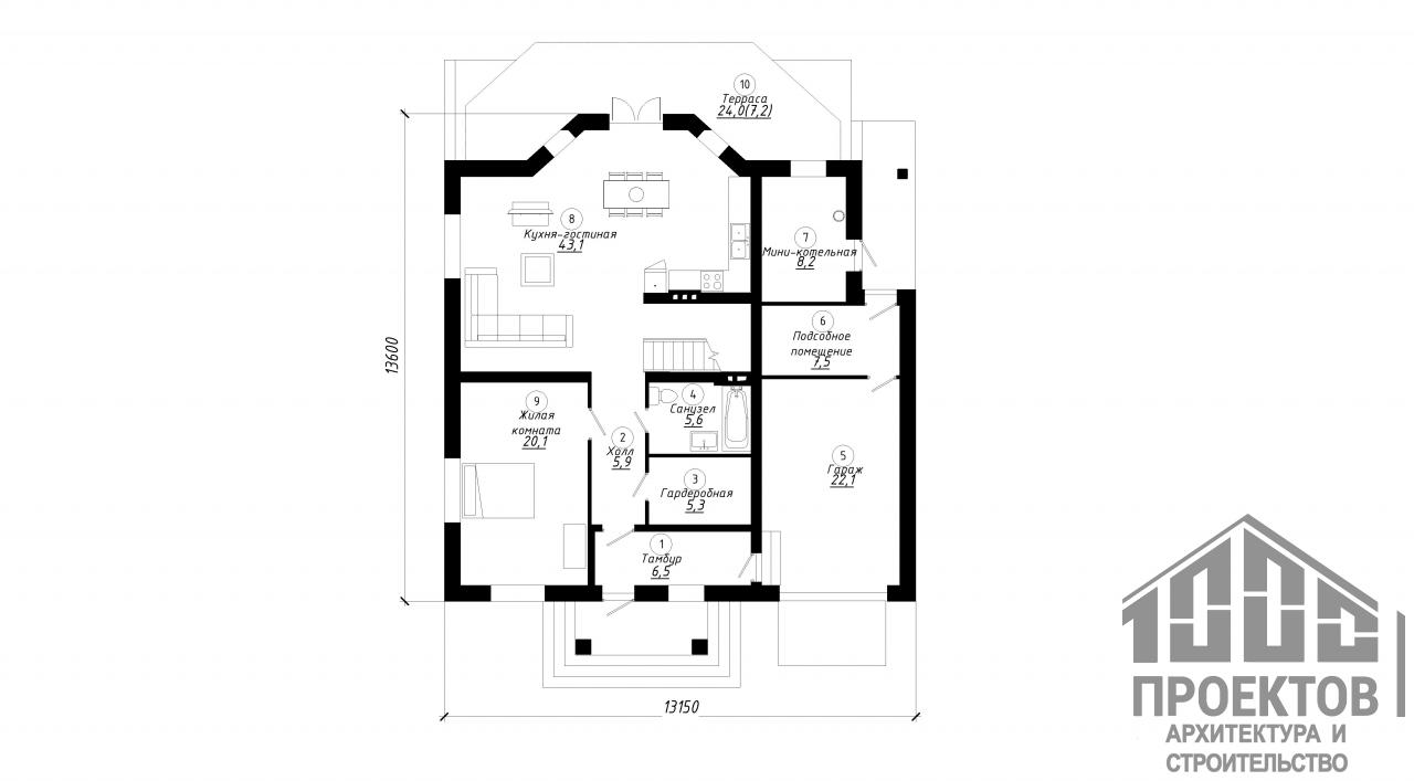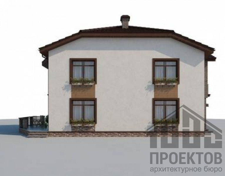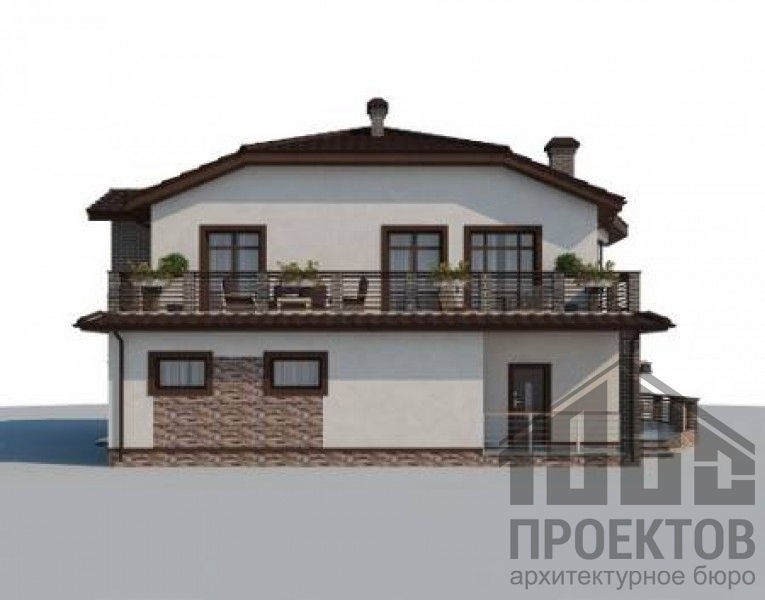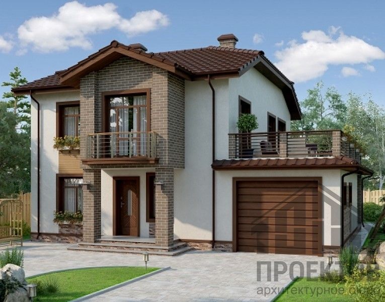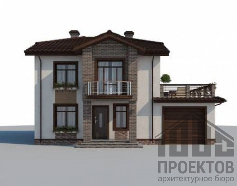 Проект двухэтажного дома из газосиликатных блоков площадью 246,65м2. На 1м этаже в проект включены большая гостиная, совмещенная с кухней, мини-котельная, подсобное помещение, гардеробная, жилая комната, санузел и гараж. На 2м этаже будут 4 жилые комнаты, 2 санузла и терраса.