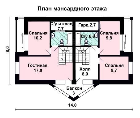 Количество жилых этажей: 1+мансарда