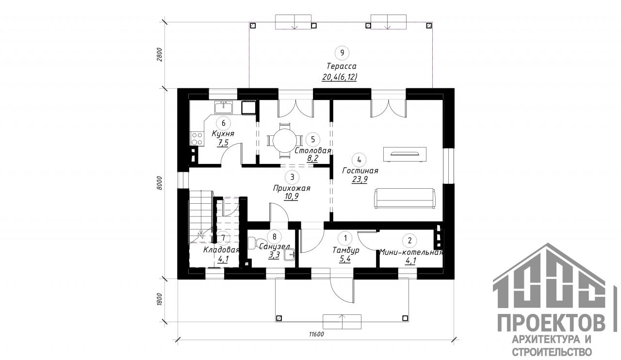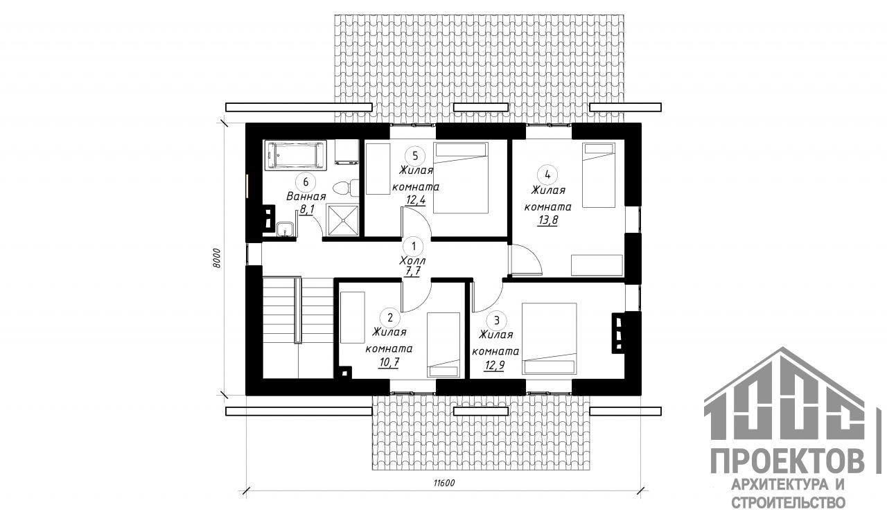 Проект дома из газосиликатных блоков площадью 139.12м2. В доме один этаж с мансардой, где находятся гостиная, столовая, кухня, кладовая, 4 жилых комнаты, 2 санузла и уютная терраса.