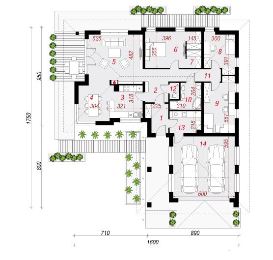 Проект одноэтажного дома с гаражом 1590