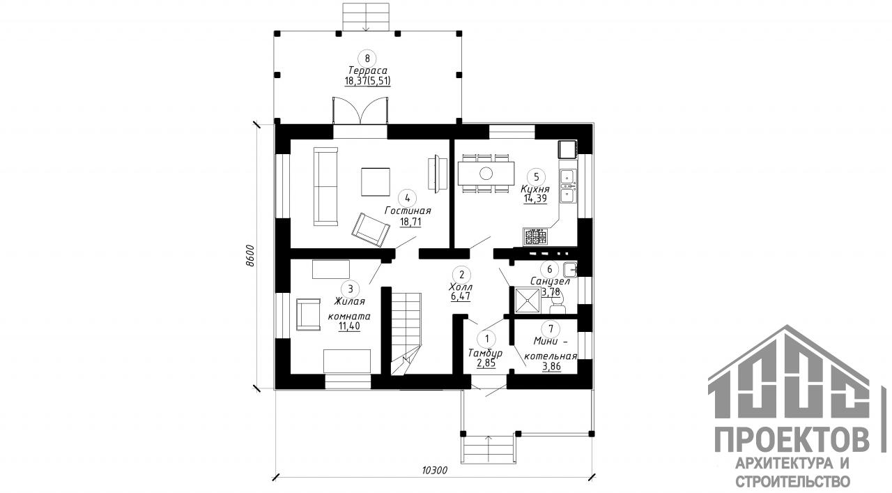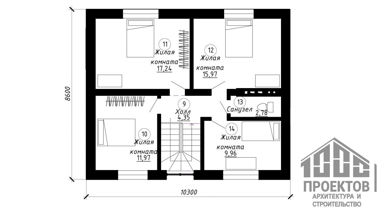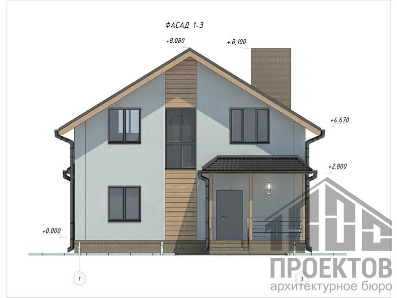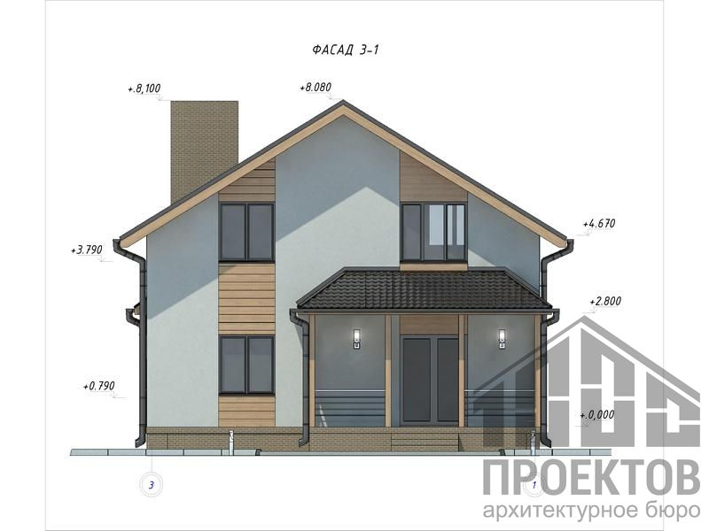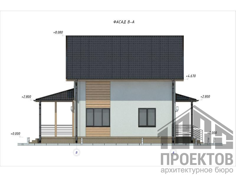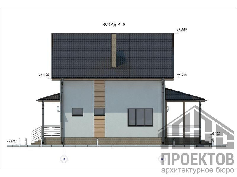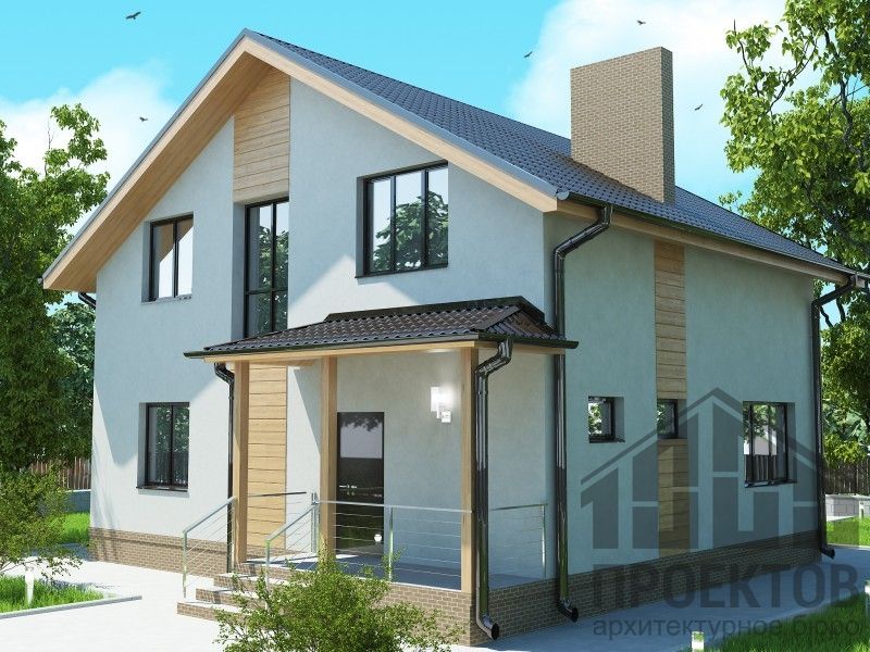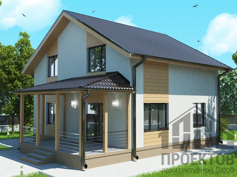 Проект дома из газосиликатных блоков площадью 129,24м2. В доме один этаж с мансардой, где находятся просторная гостиная, кухня, 5 жилых комнат, 2 санузла и терраса.