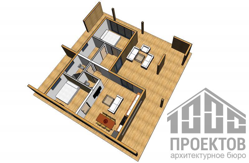 Материал стен – «каркасного типа» (толщина утеплителя 200мм), с обшивкой плитами ЦСП с отделкой, с обшивкой «имитация бруса», с отделкой рейками