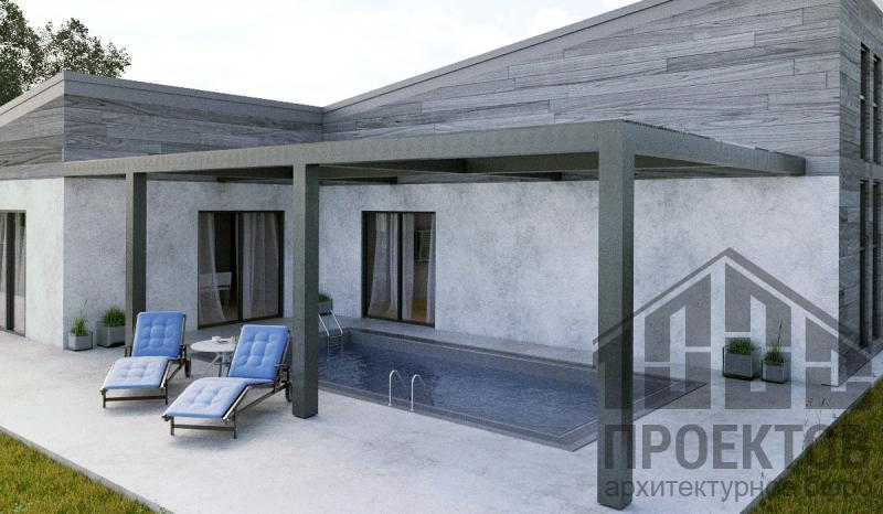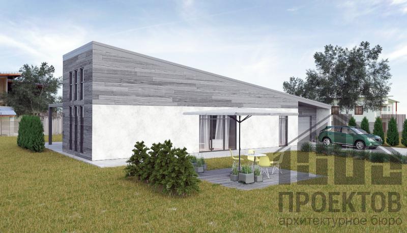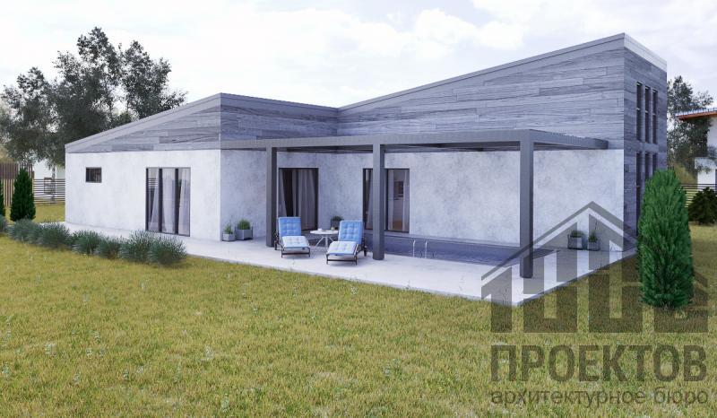 Материал стен – «каркасного типа» (толщина утеплителя 200мм), с обшивкой плитами ЦСП с отделкой под бетон, под древесину