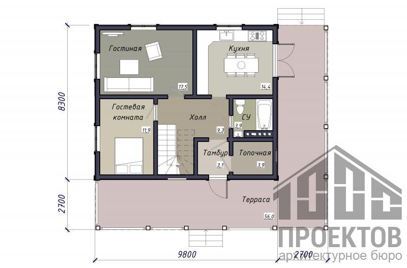 Высота этажа – 2,5м. Подъем мансарды - 1,5м